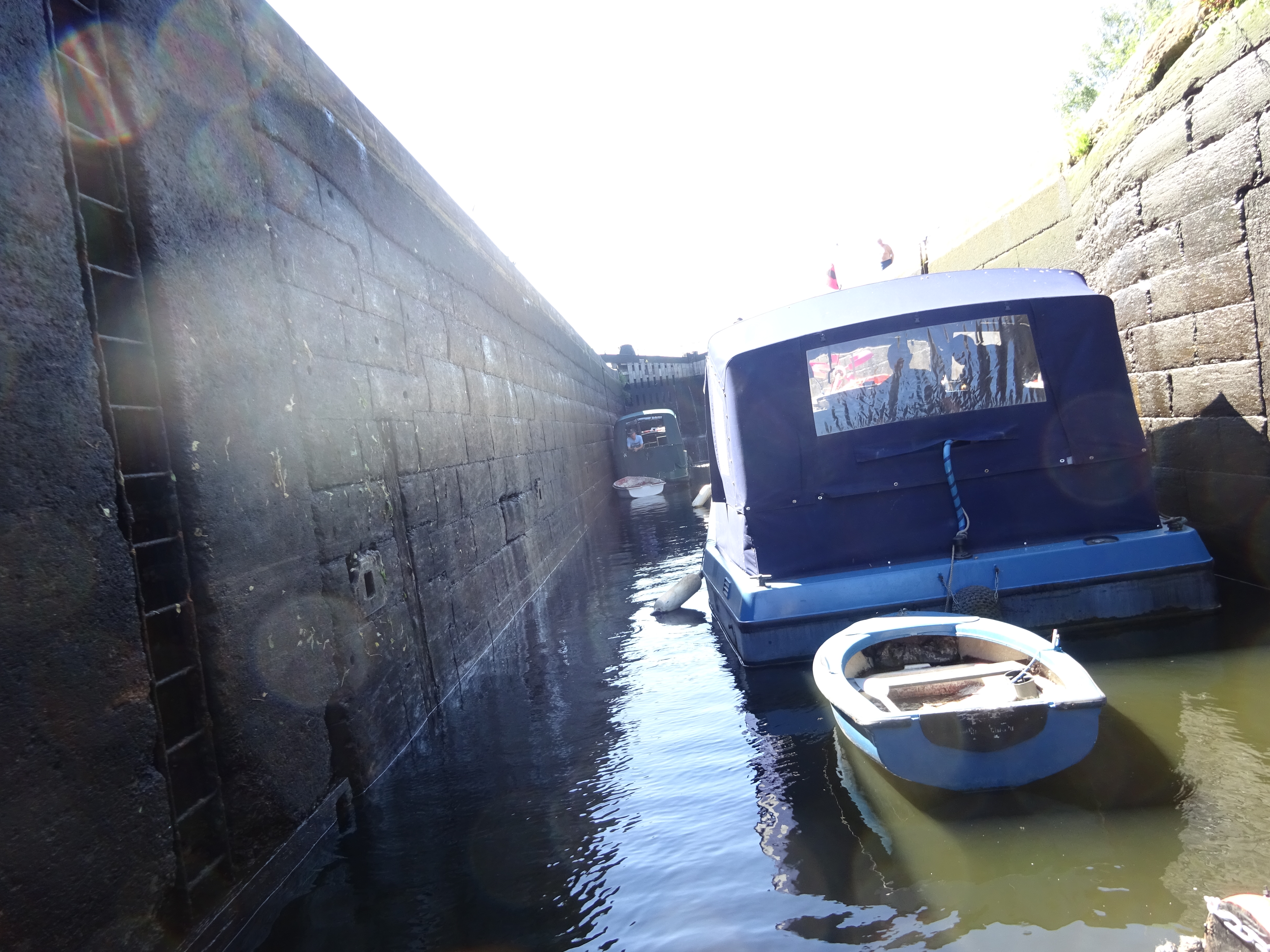 The novelty of navigating huge commercial locks in a convoy of a wide beam, 2 narrowboats and 2 dinghies took us time to adjust to, so slow but sure was fine with us, and we were just glad to support them in their mercy mission in a very small way with some lock support.