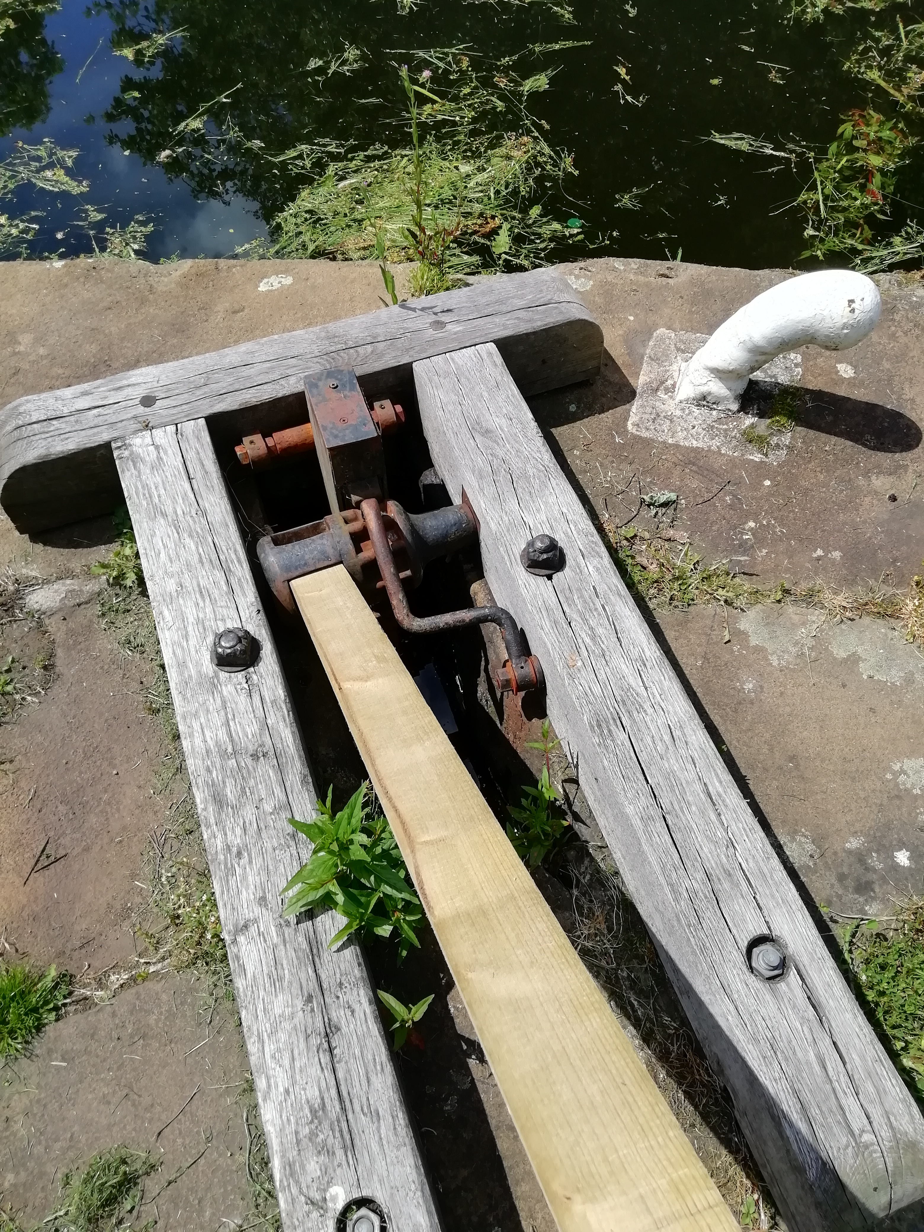 Yet another passing walker (male) told me this week that I should be ashamed of myself for letting Steve sit on the boat whilst I get a workout on the tough locks of the Calder & Hebble (a shock to the system after the push button approach of the Aire and Calder)! You set off to tackle them armed with a handcuff key (which often didn’t work) a long handled windlass for extra leverage and a Calder & Hebble spike. Every canal has its quirks and the spike is unique to the Calder & Hebble and apparently the Driffield Navigation. We were advised you can buy these from CRT or a chandlers or just get a piece of 3 x 2 hardwood that will do the job. My resident Yorkshireman did the latter and it worked fine once I got the hang of the spike mechanism thanks to a Dutch barge owner who showed me how.
