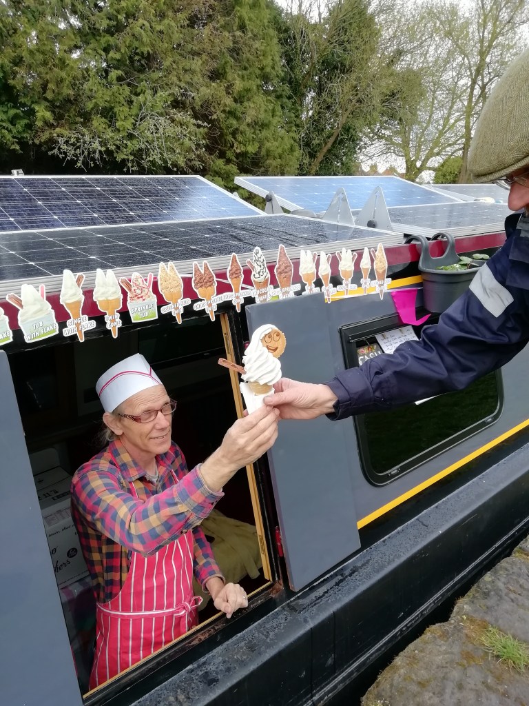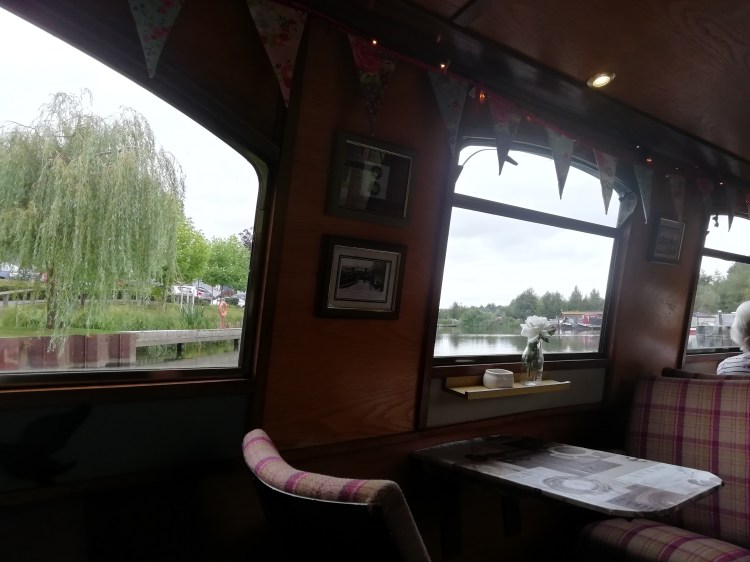 From our travels we’ve already encountered a softserve ice cream boat (the sublime Wobbly which also serves candyfloss and fudge in what seems unlimited flavours); Holly the cafe boat with Jo’s amazing homemade cakes; a hairdresser; a wood carver and artist; Holm Oak Trading which sells a huge range of eco products for home, human and canines plus clothing from recycled offcut materials, so reducing waste, and the luxurious Pullman seating of Boat Street Cafe.
