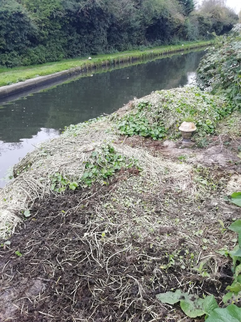 We got to share the first day’s cruising memories of a couple who sold up everything and moved onto a narrowboat with no prior experience of one; we met the last finisher of the 2021 London Marathon (a justifiably proud 83 year old); saw some interesting floating roof gardening (wonder if I can manage wisteria…not sure if the other plants on an adjoining boat were legal…), and moved from pea soup algae covering the canal on the Paddington Branch to another invasive species, pennywort, clogging locks and propellors further north. We, like other boaters, are dragging it out constantly, and will keep doing no doubt as we head north.