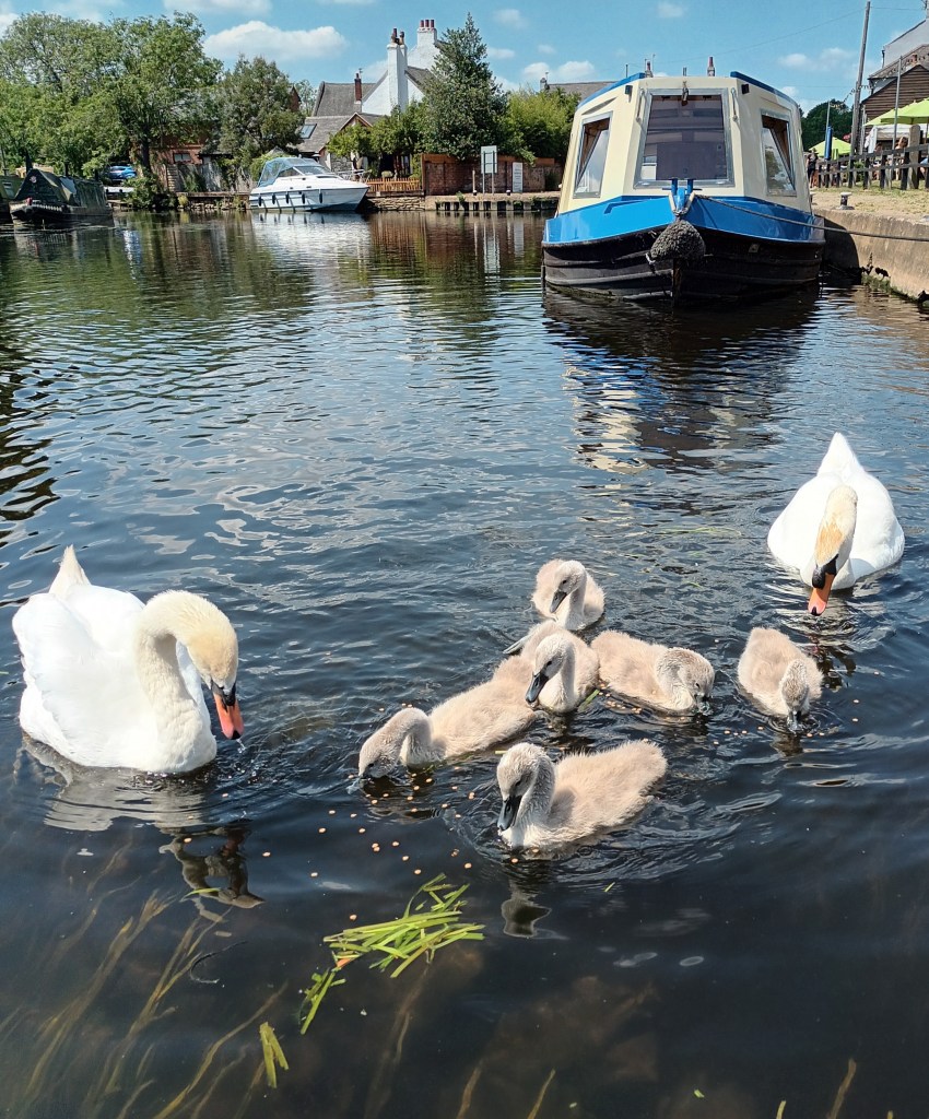 When you live and work in a different way to the norm – when your commute is a stroll along a 50ft boat, when your office desk is your dining table set under the gunwales, when glancing up from your computer you see calming ripples on water, swans bringing their new family along for a snack and at this time of year, ducklings jumping in ungainly leaps from the water to catch a tasty insect for a snack – that’s when you know you are lucky.