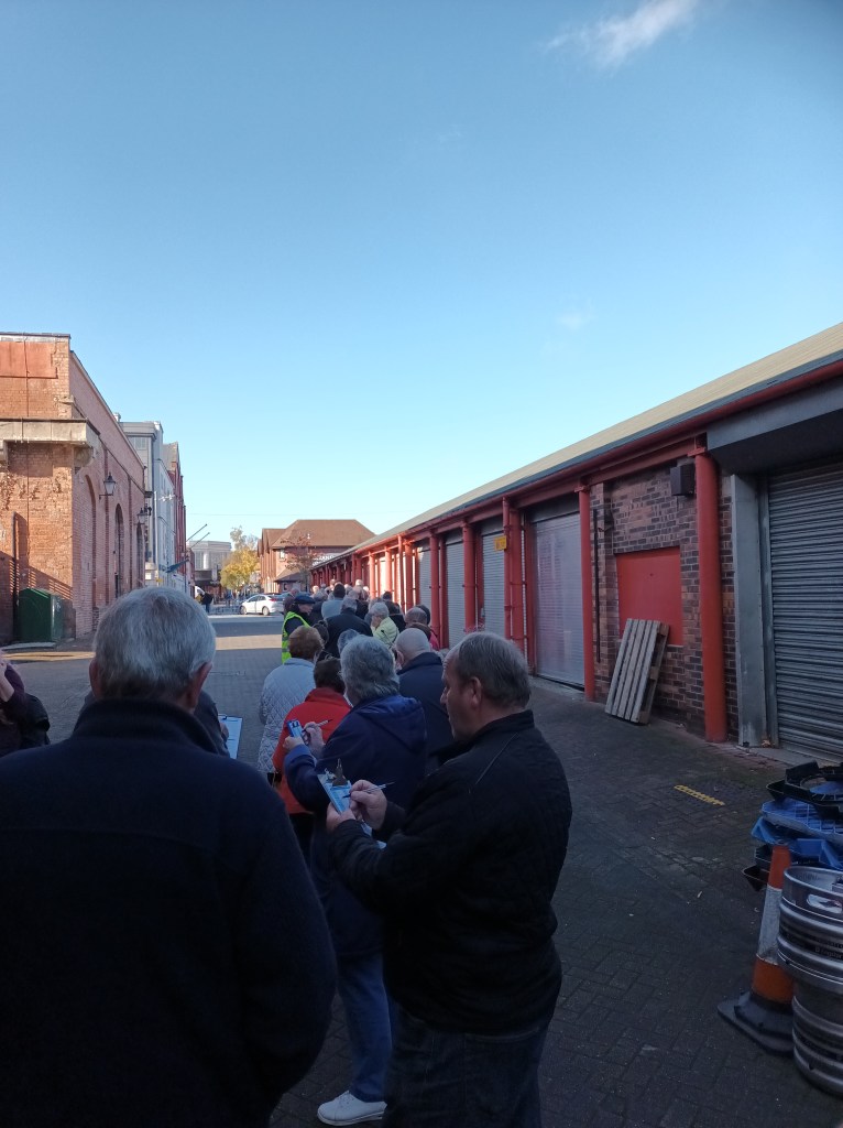 There was a queue, friendly, good natured, a but only about 10 minutes long. As one lady put it, “Better that than the flu and it gives me time to nip over and get sausage rolls from Chatwins.”