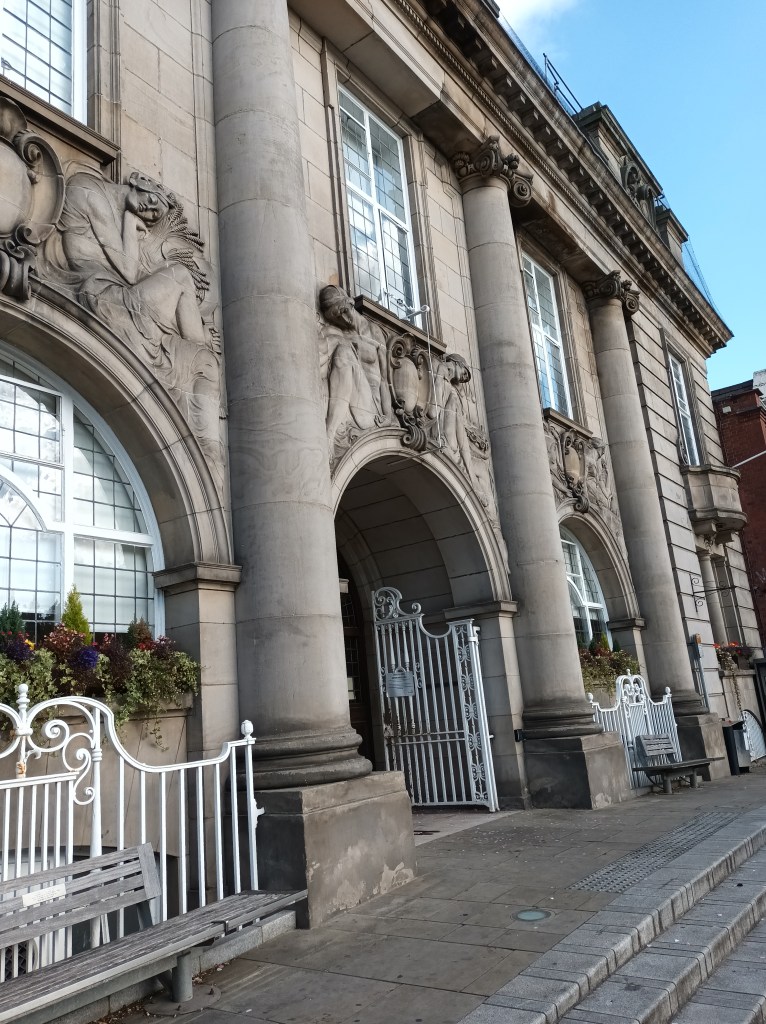 The info was spot on – behind the Baroque splendour of Crewe Town Hall adorned with Frederick Shenk’s elegantly pensive figures, stands the old market hall.