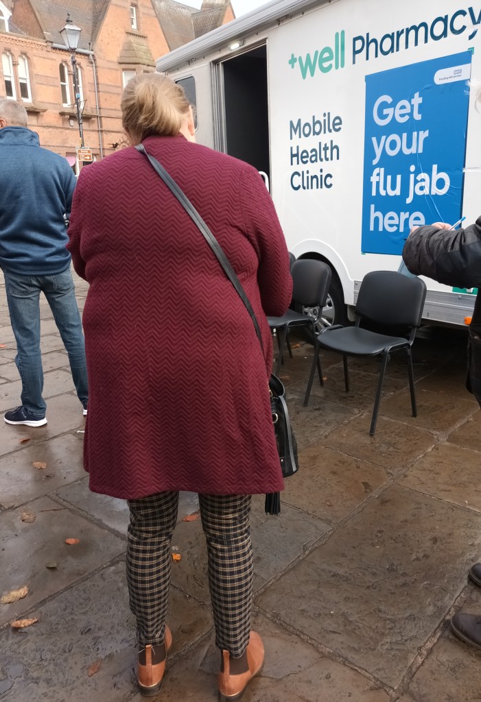 We found we could both get flu jabs at a walk-in van in Nantwich by the memorial and conveniently opposite a rather good bakers.
