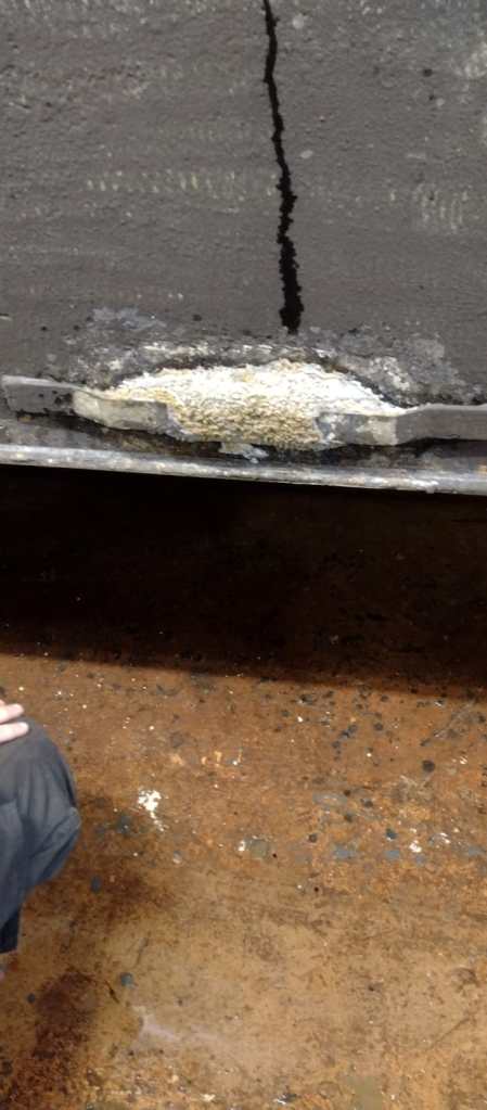 We need to leave the boat because the work being done involves cleaning and repainting the sides of the hull with two pack epoxy blacking (to protect the metal for another 4 years), and the water tank needs emptying, opening, cleaning, resealing and we are having a water gauge fitted so we are no longer just guessing how much water we have on board at any point! There are also some welding jobs that need doing, and having now got her out of the water we can see she needs six new anodes. These are sacrifical metal ingots welded to the hull underwater. Electrolysis in the water from boats around corrodes the anode rather than our hull or propellor. Essential but more noughts on the bill.