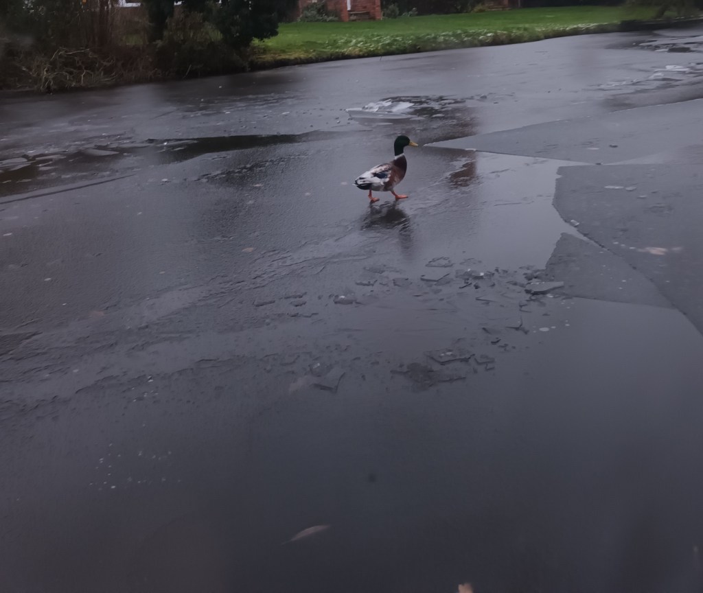 The Staffordshire and Worcestershire Canal where we are moored began to freeze at the end of last week. Initially the ducks were alternately swimming and skating but over the weekend the freeze began.