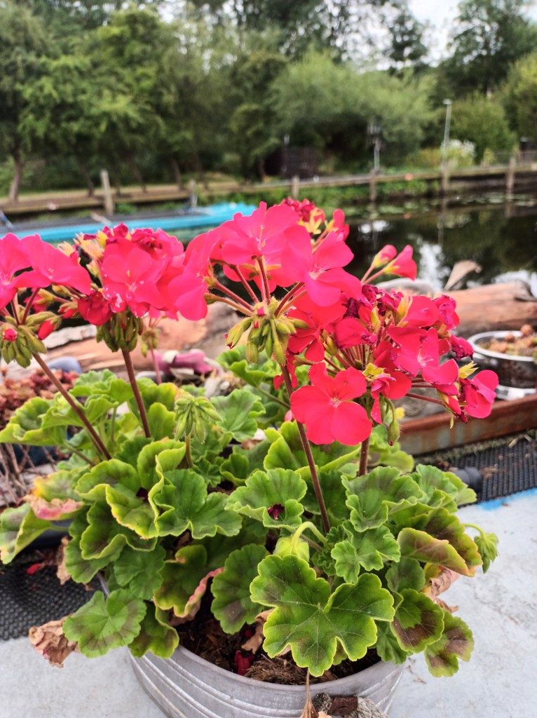 Splashes of colour not only attract insects away from inside the boat but are essential for passing bees. So sunshine yellow bidens, (beggar ticks) and maybe the blue swan river daisy brachyscome. Pelargonium survived last year and distract insects. Sedums grow well on the roof in old boits and containers. I’ll also add some cornflowers I have and as many herbs as I can. If anyone has any other ideas – please share in comments!