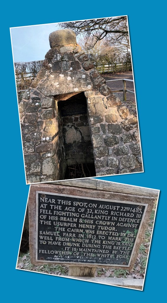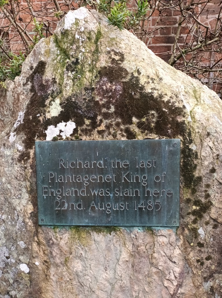 In this place, Richard III camped the night before his encounter with the man who had returned from exile in Brittany and was marching up Watling Street heading for London. In the heat of battle the king was said to have drunk from this well we see today.