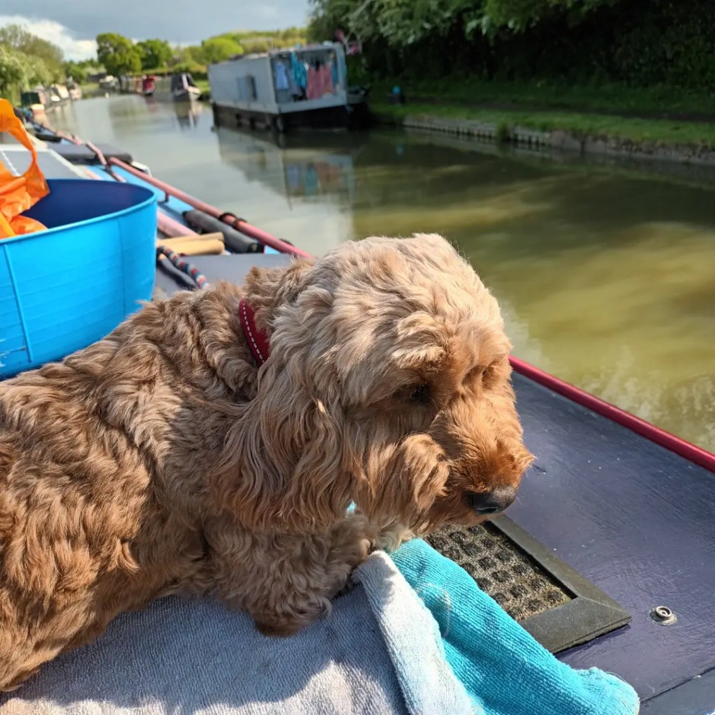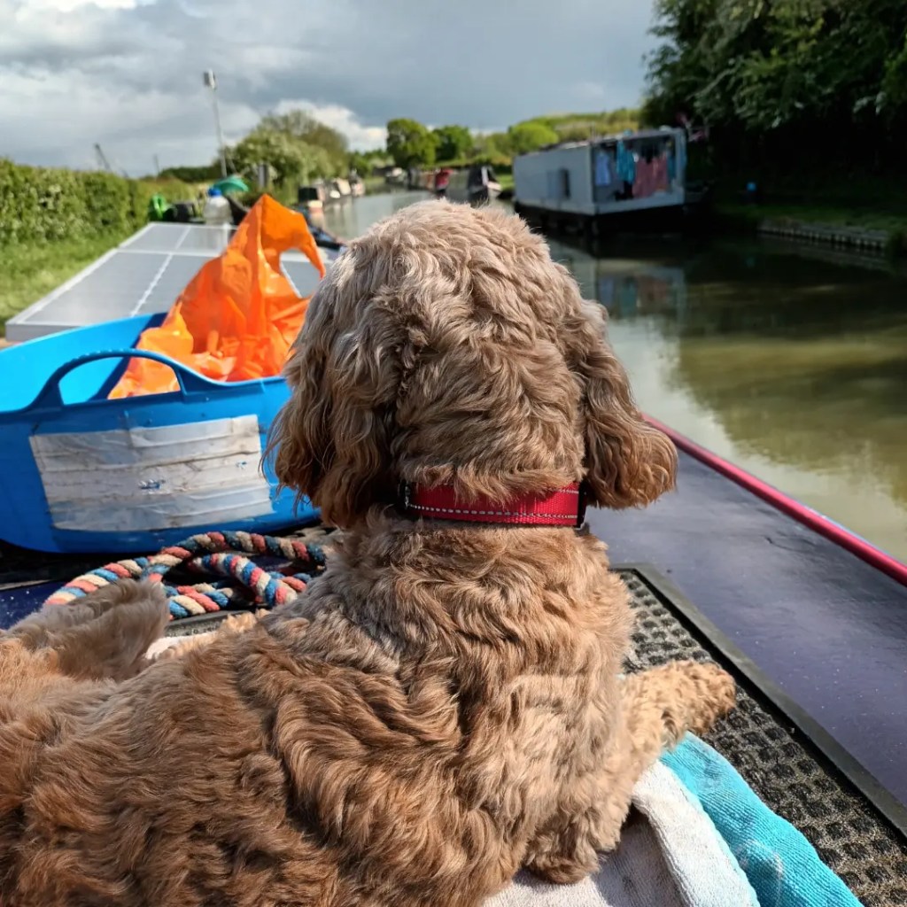 Instead, she has found her own favourite spot – just where Cola our old boat dog used to sit. She sits looking out of her porthole at the feet of whoever is on the tiller, and watches the world go by. Locks, tunnels, boats alongside, ducks, swans, everything interests her but nothing seems to alarm her. She is in short, a delightful companion afloat. This weekend we have another crewmate on board, so she like us, will enjoy the invigorating company of a 5-year-old too.