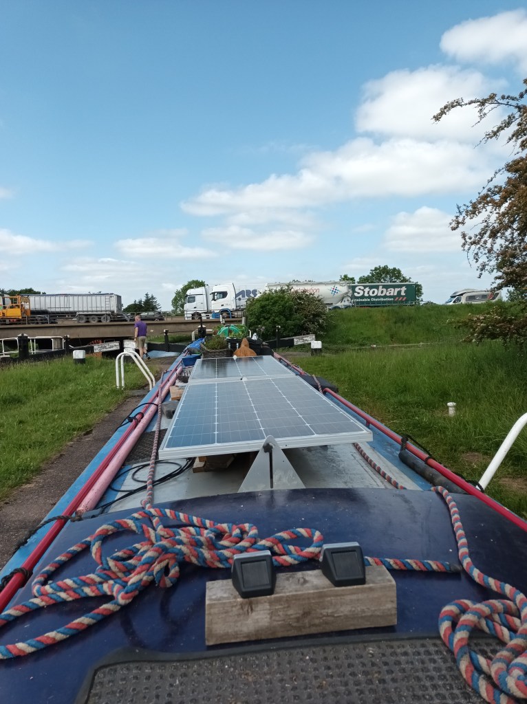 In the past two weeks we’ve travelled a total of 113 miles and worked 65 locks. At a maximum of 4mph we’re doing well. Drivers stationary on the M6 when we passed underneath them were shouting out that they’d swap with us – needless to say – we didn’t take up the offers!