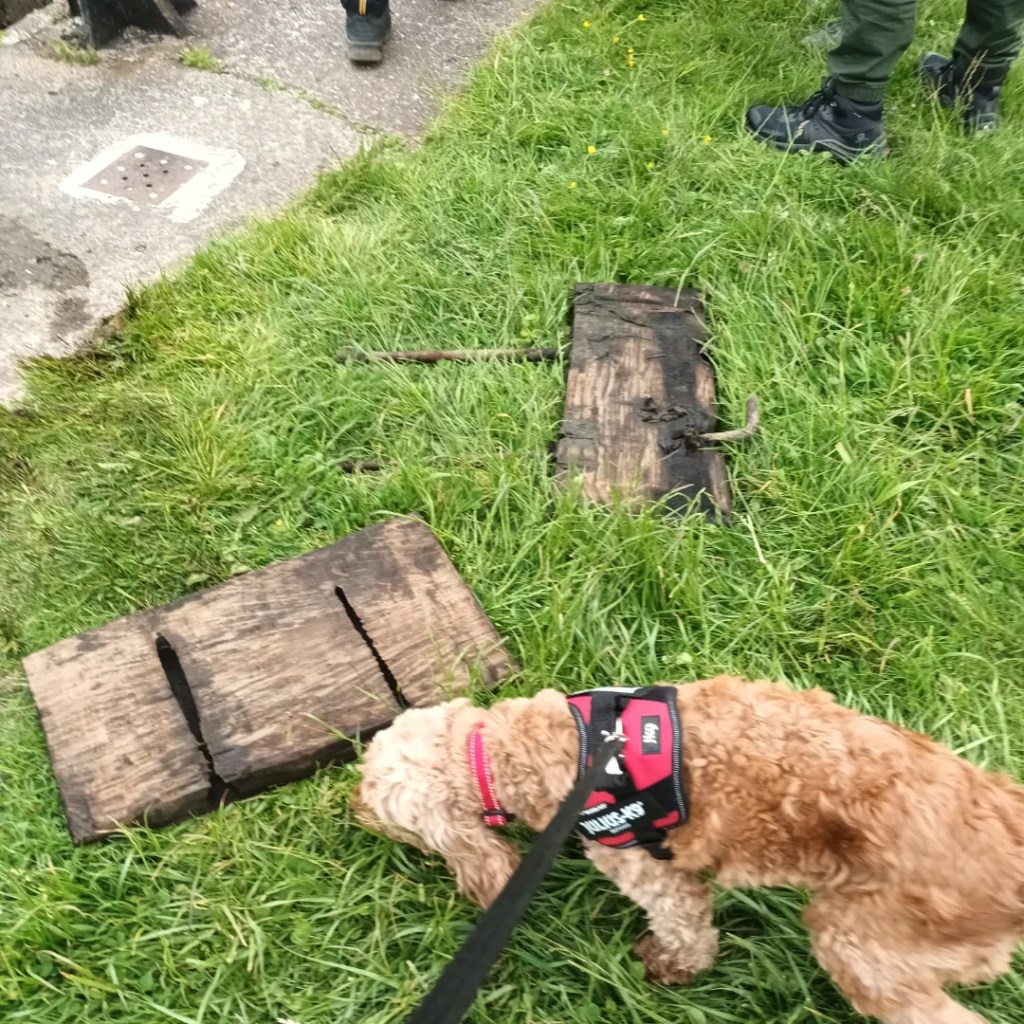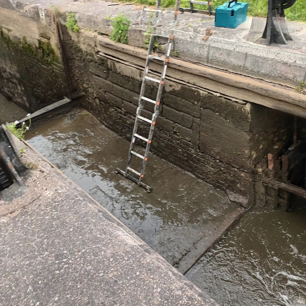 I came as near as I dared, managed to moor up, and we set off to explore taking the dog for an unexpected additional and appreciated walk. Sure enough, Canal and River Trust (CRT) staff were already in attendance, and Lock 69 was clearly out of action.