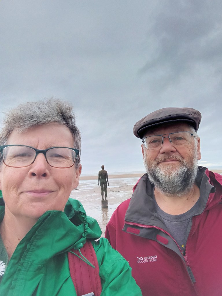 We went to Crosby where she was somewhat confused by Anthony Gormley’s wonderfully weathered statues – 100 lifesized naked men spread across the beach. She didn’t bother about them being naked but couldn’t understand why they wouldn’t stroke her when she nudged their hands! Apparently the internet is awash with pictures of dogs dropping balls at their feet and waiting patiently for the statues to throw them!