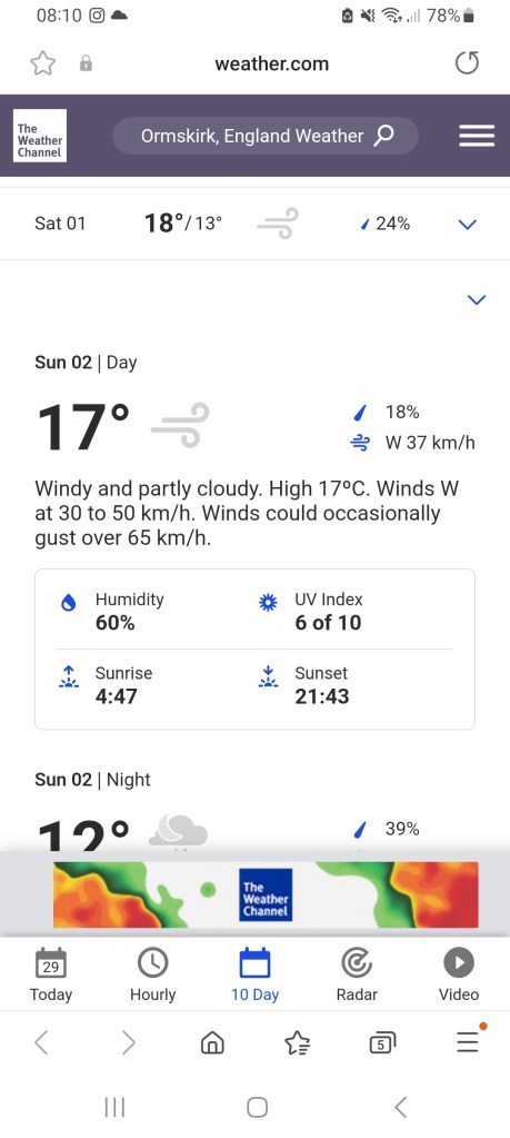 We crossed into Lancashire – stalwartly flying our Yorkshire Rose flag… and I am no longer complaining about the heat. Now I am wondering if I am about to get rust whilst being grateful I don’t have to water the roof garden.