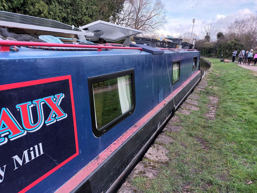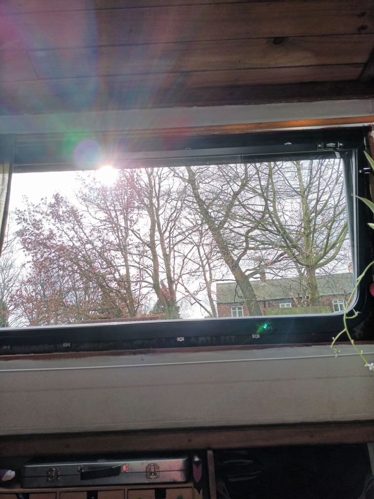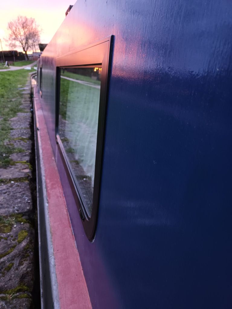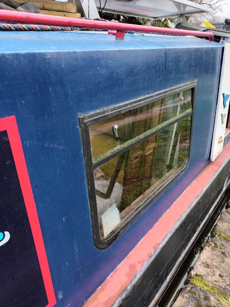 Last night was so bizzarely quiet on board the boat (and we’re moored outside a pub by a road) – we could hear a pin drop. Somehow, I hadn’t expected such a complete change. I had to open the window by the bed to hear the birdsong this morning! There are noticeably fewer drafts, and we can begin the process of insulating the internal areas around the new windows, making new wooden frames for the inside as streamlined as our new views on our world. I think new window coverings are also called for – maybe blinds this time with magnets to hold them in place on our sloping walls, so we can pull the blind right up above the window and maximise not only our view of the outside, but our view of these amazing windows.