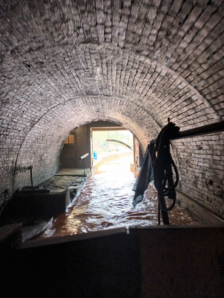 From Middleport it’s just a short trip to the Harecastle Tunnel. We’ve made it through at least four times now but there’s still a frisson of something as we head towards that entrance, hearing the roar of the fans and the thudding clang of the doors slamming shut behind us as we cross the threshold. Is it fear? Is it nerves? Despite the view of the coffin and skeleton visible as you enter from the south, this time was an uneventful calm 40 minute journey through the mile and three quarters underground. They haven’t always been like that, so perhaps recollections of previous less easy encounters with the Scarecastle Tunnel have made me anxious.
