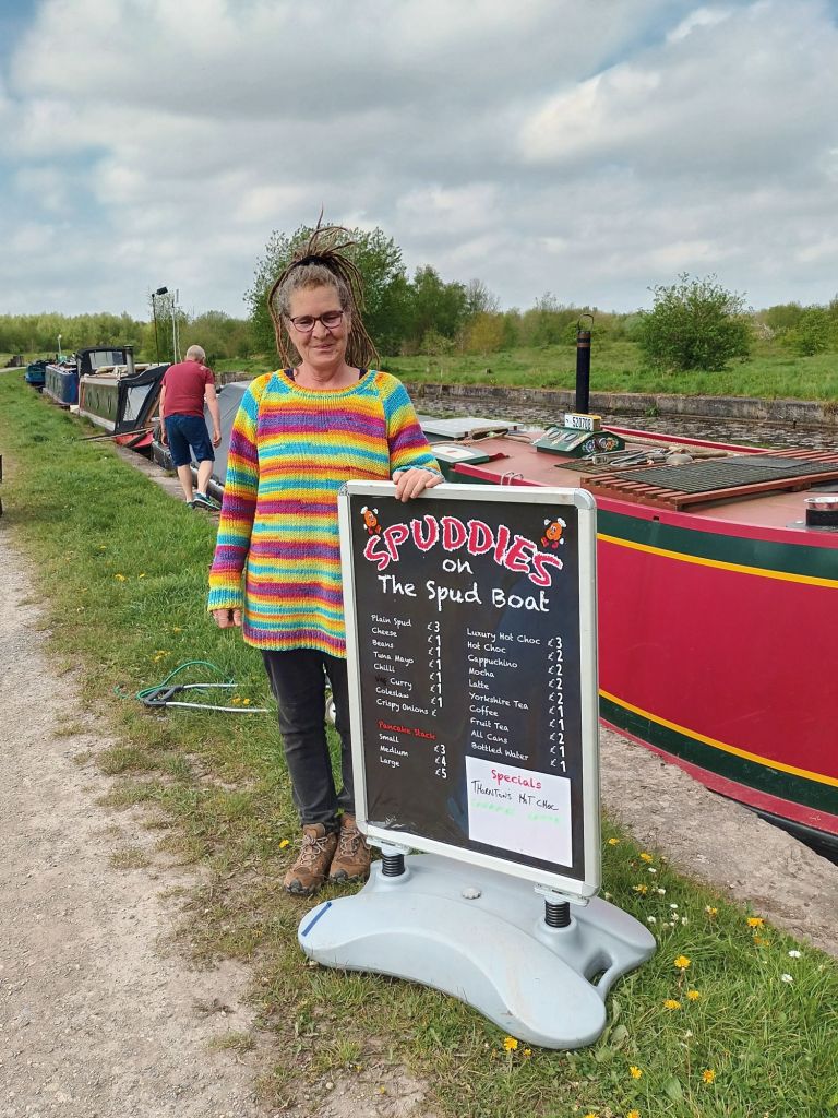 Steve and Jo, when we first met them some years ago, were setting up a doughnut operation on their boat, but to produce and cook a successful doughnut the equipment needs to be totally level and that isn’t always the case on a moored boat. After months of persevering, they sold the equipment and bought another boat, which they equipped from scratch to serve Spuddies. They also run a second business aboard – The Laundry Boat, offering service washes mainly to boaters. This is proving particularly popular in the winter, and they’re aiming to expand to offer a dog bed/rug wash n dry service too.