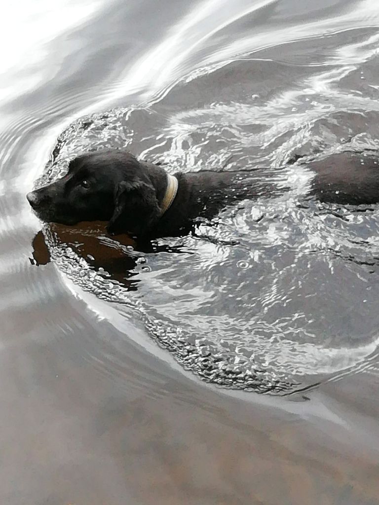 At all other times water is not her chosen habitat, unlike her predecessor she loathes getting wet. Cola would swim, swim, swim but not his successor. She’s to be found tiptoeing round puddles on the towpath but on the occasions she has fallen in she can swim like an otter with an expression of total disgust!