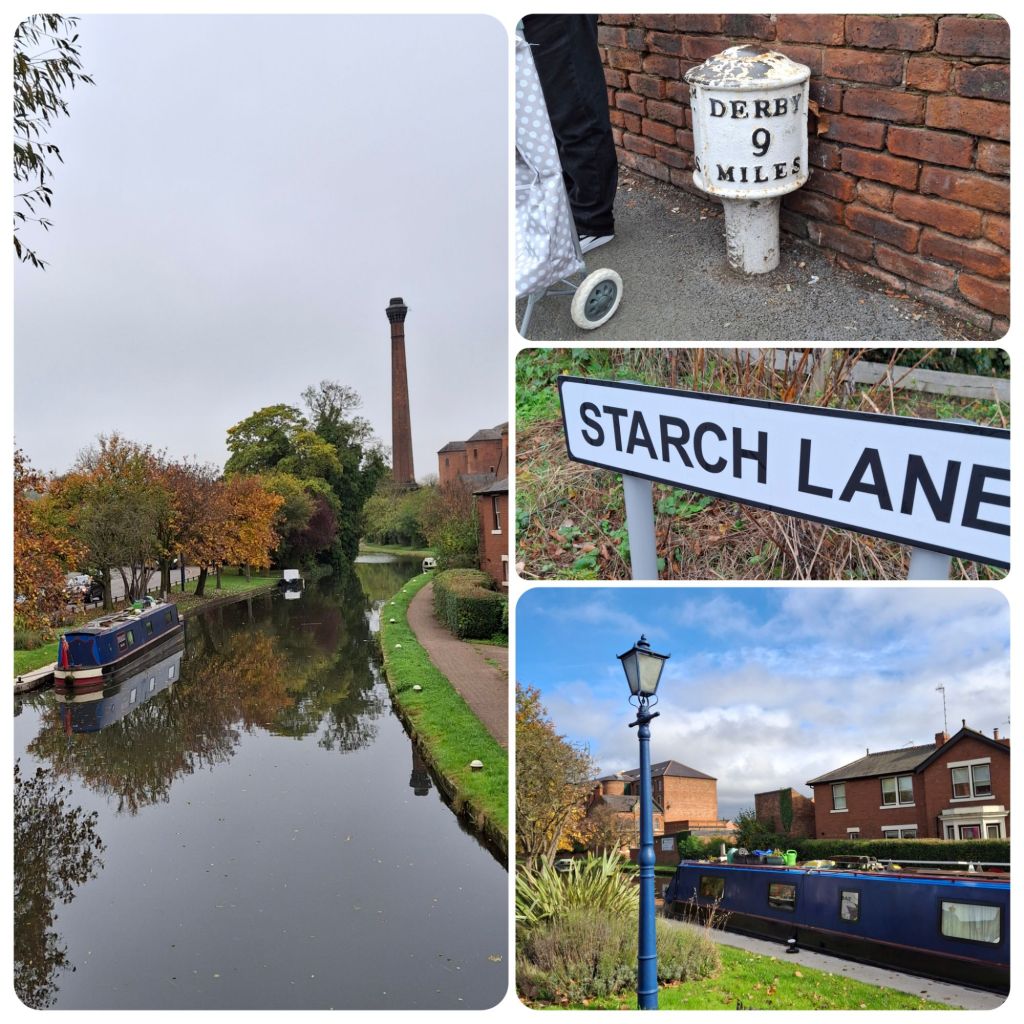 Coming through Sandiacre Lock brought us into another world – one of bustle and history. Sandiacre itself was once renowned for starch works, brickfields and lace. The Padmore Moorings were once coal wharves and overlooked now by 21st century cctv cameras but also by 19th century gas lights – donated by Terah Hooley (wonderful name) who built the impressive Springfield Mill on the other side of the canal. The mill complete with its four beautifully semi circular staircase turrets is now apartments but in its day it had its own gas works, and Hooley donated 50 lamps to the village on the understanding the gas to power them was bought by the council from his works!