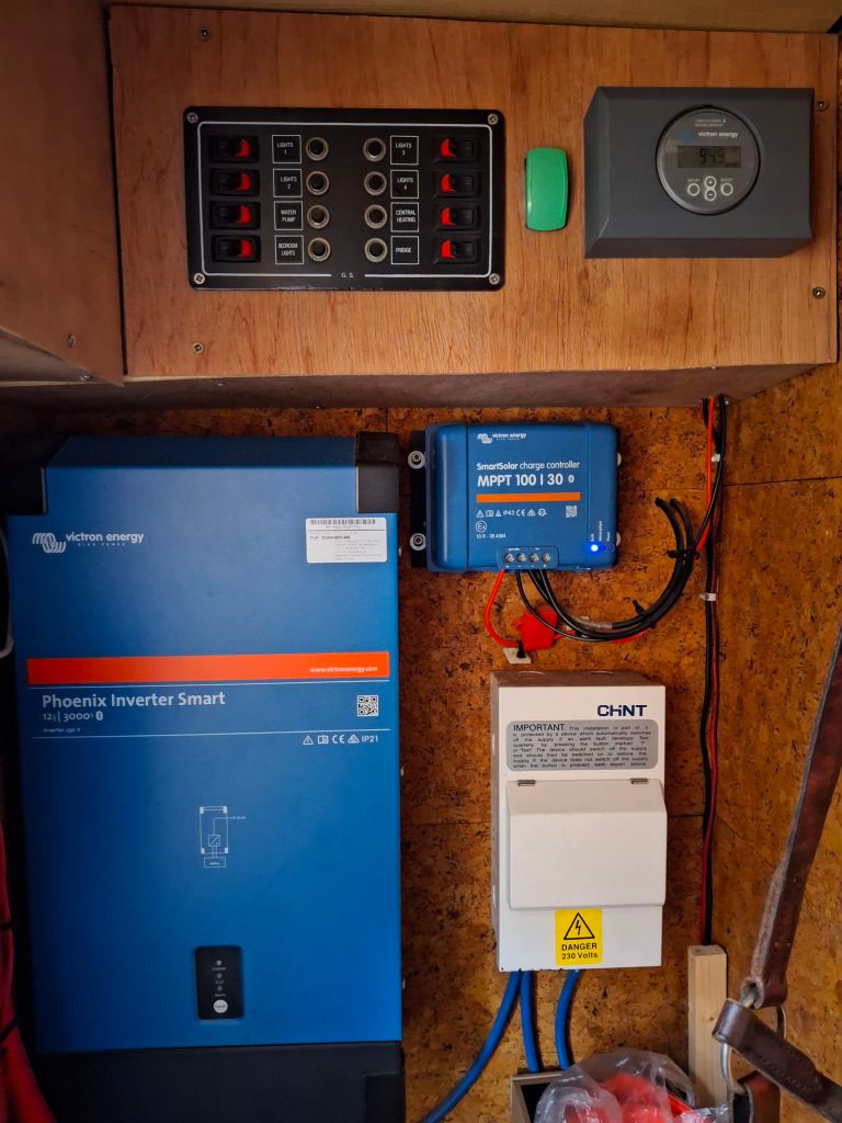 So we now have a completely new power system. It will allow us in time to remove our gas cylinders, move to an electric induction hob, but for the minute I don’t have to worry that the batteries are going to slowly die on us. I don’t have to remember to charge them every day (using diesel) or wonder if they have enough power to get our clothes clean. Nor do we need to turn the fridge off every night.
