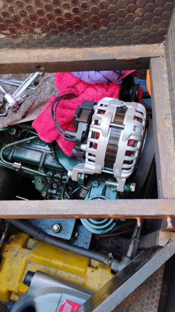 Getting the battery in, working, connected up to a newly installed 150amp Bosch alternator to replace our previous old 70amp one, linked into the solar power system, installing a regulator together with new fuses, a new battery monitor and making sure everything was working took Ed a long day and a half of hard graft. He was hugely efficient, hugely knowledgeable and also a very nice person to have around.