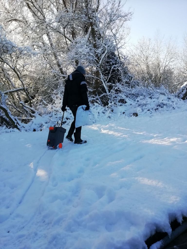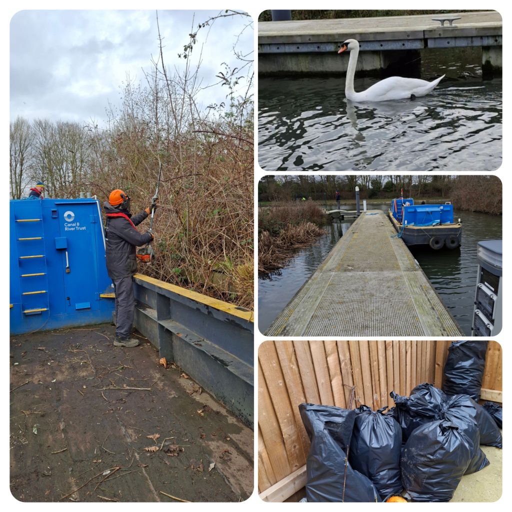 We spent Valentine’s Day together appropriately down Memory Lane – in a boat. Well, Memory Lane Wharf in Leicester, to be precise, in CRT workboat Aylesbury litter picking and clearing buddleia and brambles with other Canal River Trust volunteers.