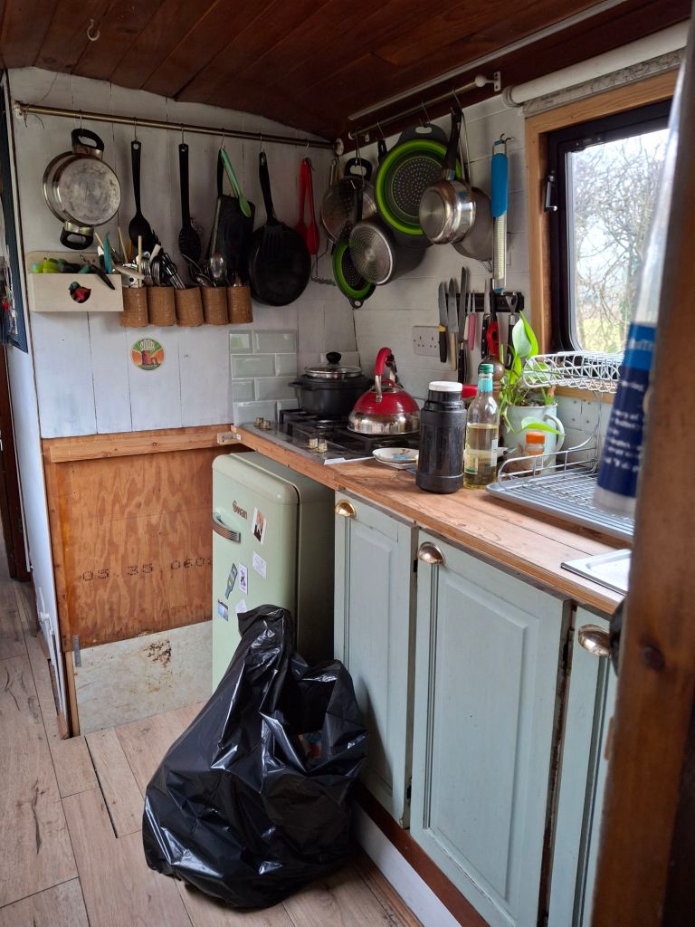 And the hob wasn’t the only thing to go from the kitchen this week. The sink and tap, the worktop, the cupboards, and shelves have also gone. Basically, there is no kitchen left!
