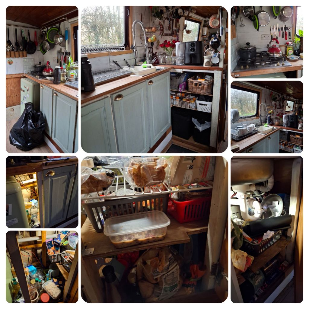 This week is a major milestone aboard Preaux, a week when we are making another massive change to how we will live (and work) aboard. We have ripped out the kitchen which the Skipper installed to keep us going. It consisted of shelves with 3 doors across and an open shelf unit.