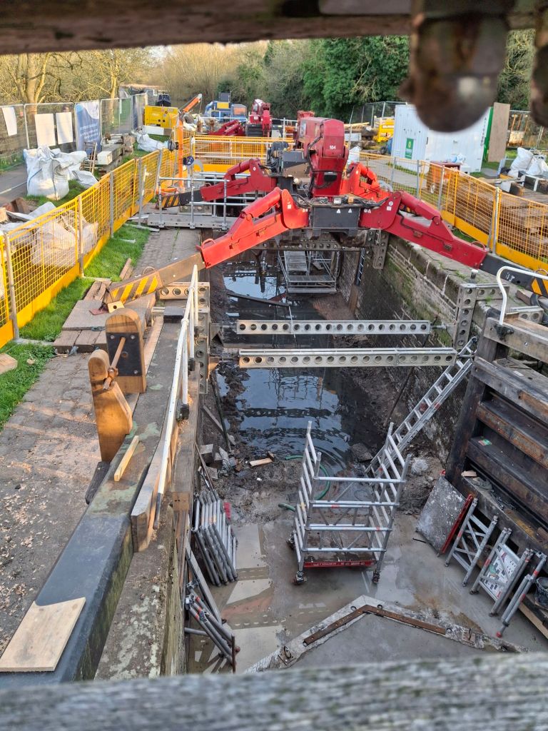 Early in the week, Work involved some volunteering. This week we were near our boat mooring itself, collecting litter, including hoovering up a Henry alongside the River Soar (why?); painting the bridge over the Weir, clearing the weir itself of debris amassed during the floods; and making good damaged handrails.