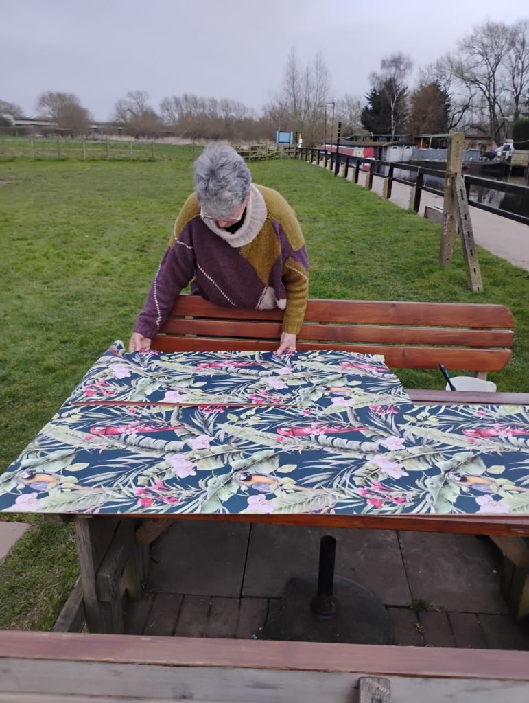 As you can see, we took the wall (fortunately not a bulkhead!) out to a convenient nearby pub table (thanks to The Waterside) and papered it off the boat!
