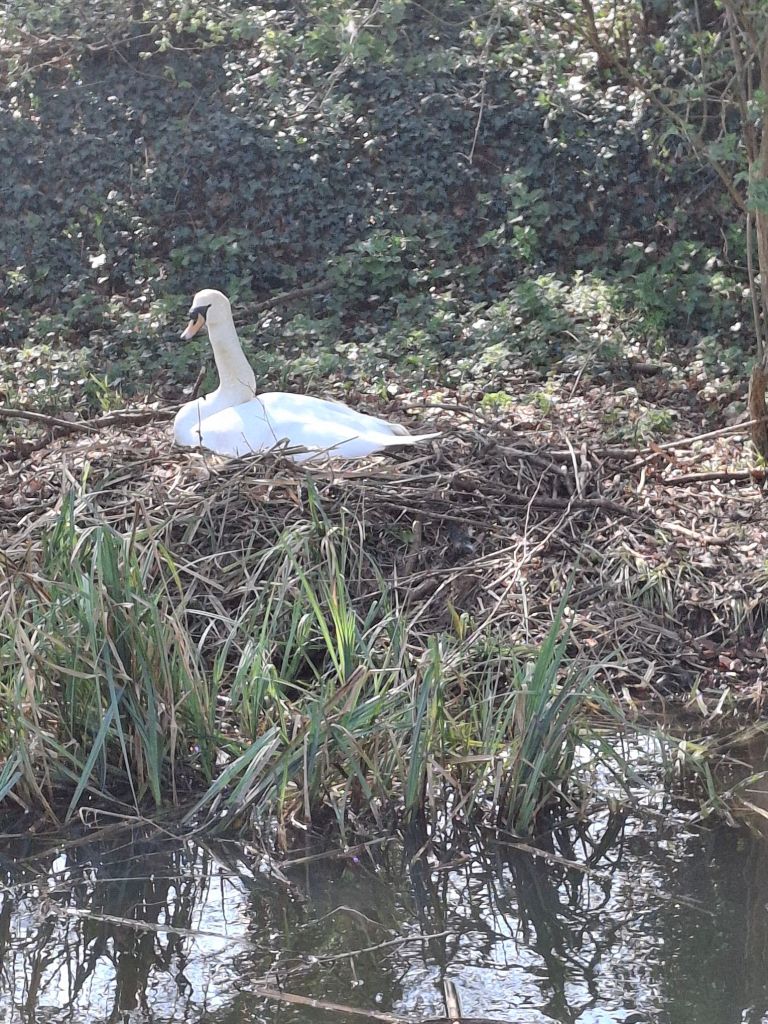 Moving as we do through nature really makes us feel that Spring is all around us. Nesting swans are greedily amassing broken reeds to build their platform nests, and signs from last year remind boaters not to endanger the sitting swans or their impending young by letting highly territorial families meet.
