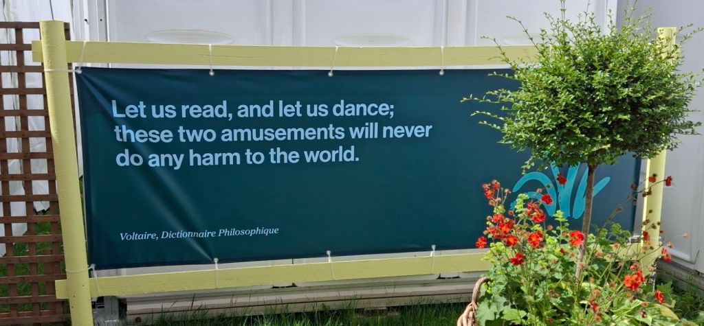 Having spent part of this week at the Hay Literary Festival on the Anglo Welsh border alongside the glorious River Wye, (involving a herculean effort to get there) we encountered Chris McCausland and many other well known names. The festival made us acutely aware of how much reading we do on our boat. We benefit hugely from the book exchanges along the waterways network. They have brought us serendipitously into contact over the years with authors and ideas, prose, and meter we would never have encountered otherwise. Getting our books this way demands effort – finding book exchanges, getting to them, selecting and choosing what to read, and of course selecting and carrying to them what we are offering to others. On a boat, it’s one on, one off, or we get get way too overcrowded. That discipline demands effort, believe me!