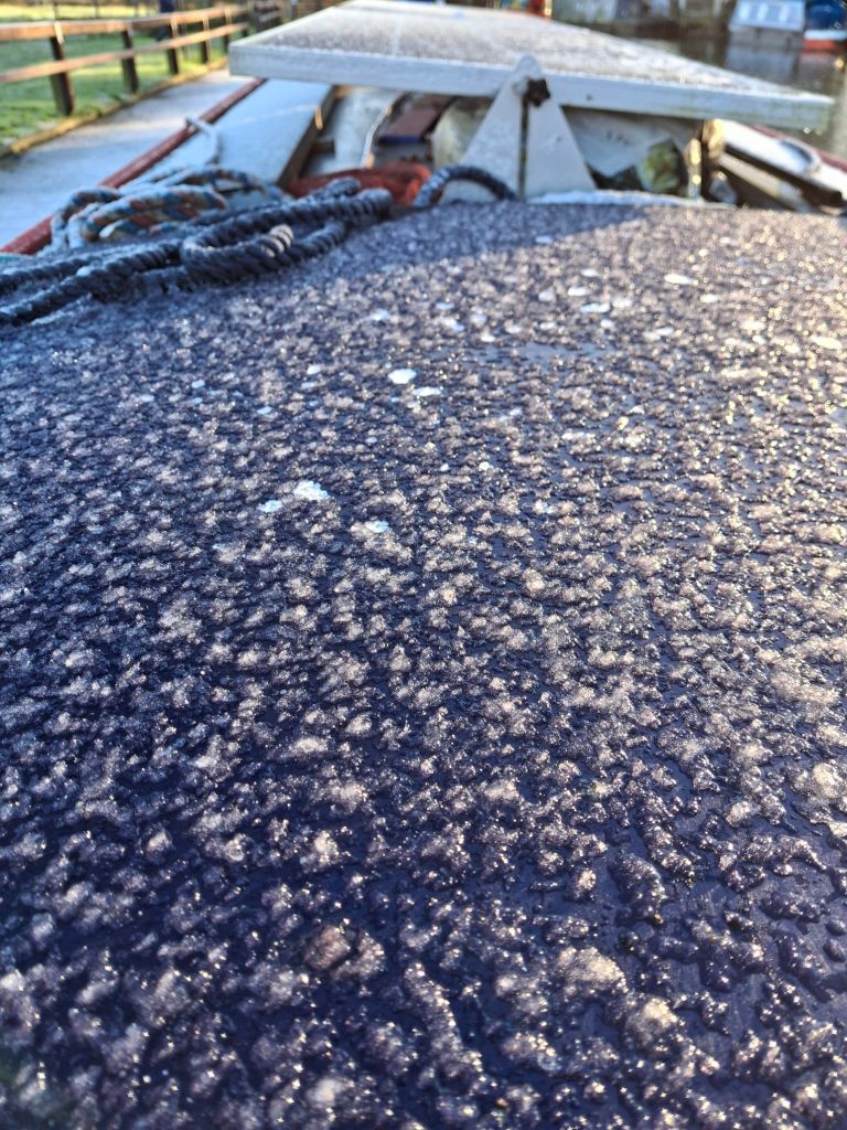 Yes, there are downsides to this life. Mud that seems never-ending in winter, a constant grumble on our boat about hot water (lack of is getting resolved…), the carrying of heavy winter fuel, the excesses which affect how we move and live from droughts to floods, the occasional moments of getting stuck somewhere you don’t want to be, today it’s frozen ropes, iced hatches and slippery towpaths…