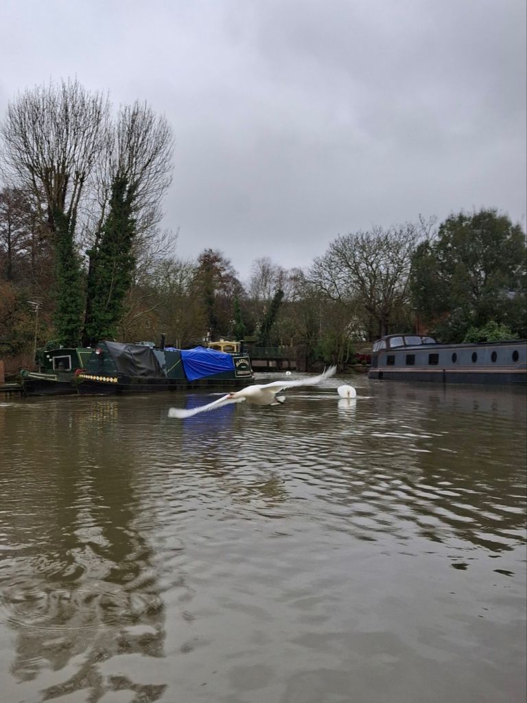 We too are waiting to see if we can flee. In the 24-hours off flood this week I prepared for departure. I have everything ready to distract swans and to move the boat once the navigation is clear of flooding and stoppages. The flood began before we had a chance to move.