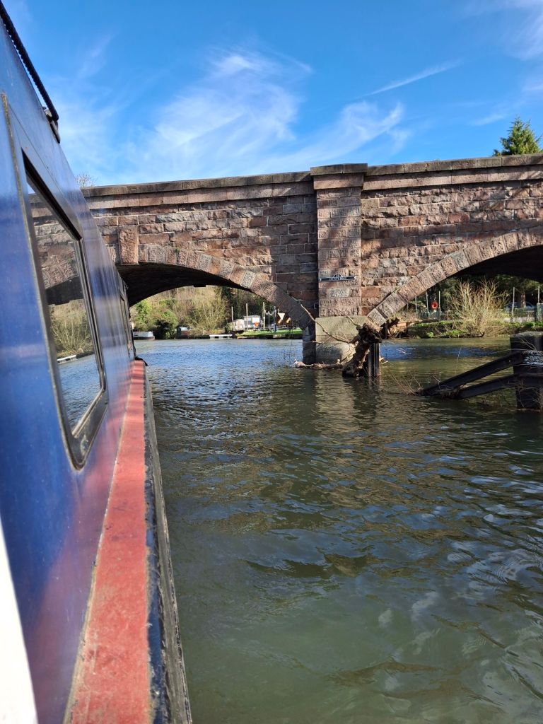 The Soar has held us in its thrall since November, but on Wednesday we bade it farewell again, having also gained a passenger as we passed Red Hill Marina. As in days of old when horses needed to hitch lifts across the expanse of the junction with the Trent to make it onto the Erewash Canal or Cranfleet Cut, this man needed a lift to collect a boat from the Cranfleet. We were happy to oblige, and dropped him as requested before heading up the Trent against the flow. The levels are out of flood but still high. By the time we made it to Sawley Lock, we were spotting other boats on the move too, all of us revelling in the glorious sunshine.
