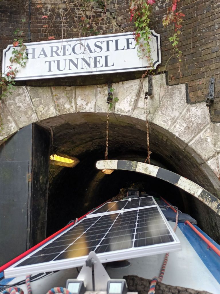 Like the Norwood Tunnel he designed on the Chesterfield Canal, the Harecastle had no towpath so for 50 years boatmen had to leg their way through it, lying on planks on top of the boat with their legs walking the tunnel sides, for three long hard hours, while their children walked the horses over the top. Brindley never saw his Harecastle Tunnel in operation, dying as he did in September 1772 at the age of 56. His brother in law Hugh Henshall and apprentice Robert Whitworth finished it for him, and it opened 5 years later, making the T&M fully navigable along its entire length. These days we cruise through Harecastle Hill in less than an hour on a larger parallel tunnel, built later by Thomas Telford and opened in 1827.
