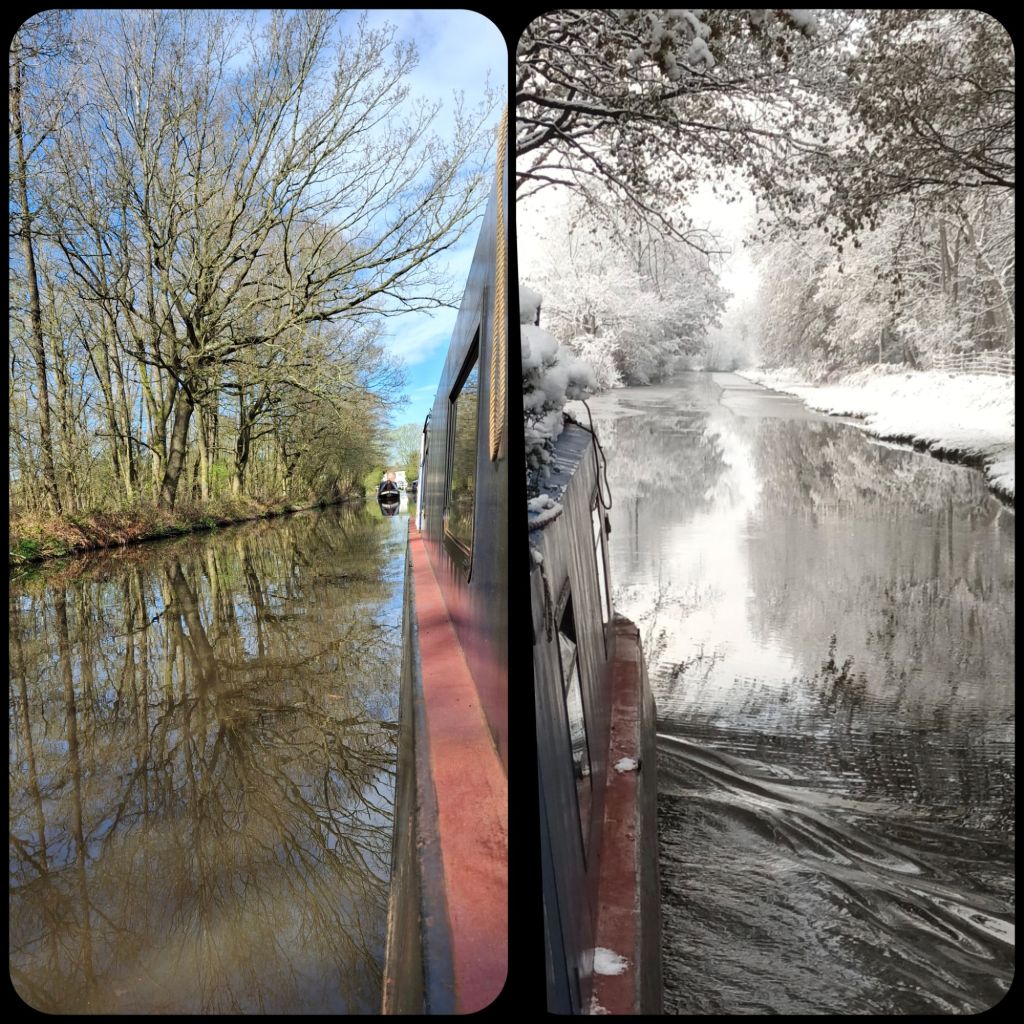 On the waterways there are many advantages. Familiarity with locations gives you a headstart – you already know where good moorings, facilities, walks, shops, pubs and cafes can be found. That’s the convenience of familiarity. Simultaneously travelling through at different seasons brings novelty to the familiar too. We are now in Spring in a place we last travelled through one winter- snow is replaced by bursting buds. We are also travelling in a different direction which also adds a new dimension.