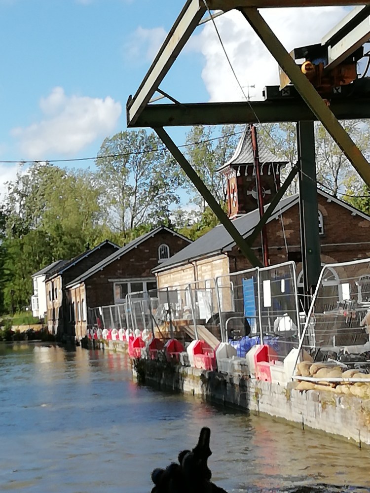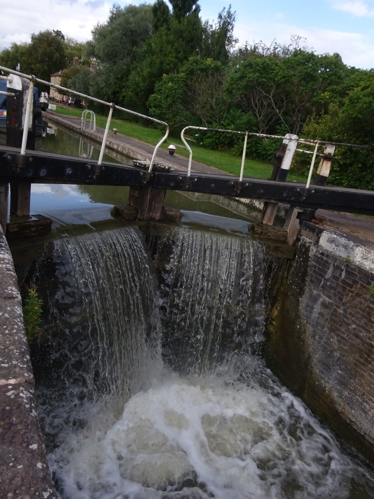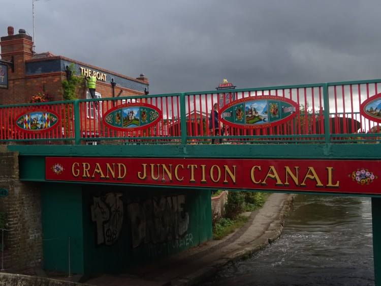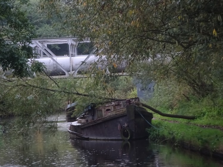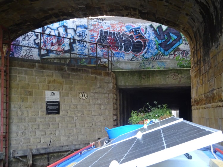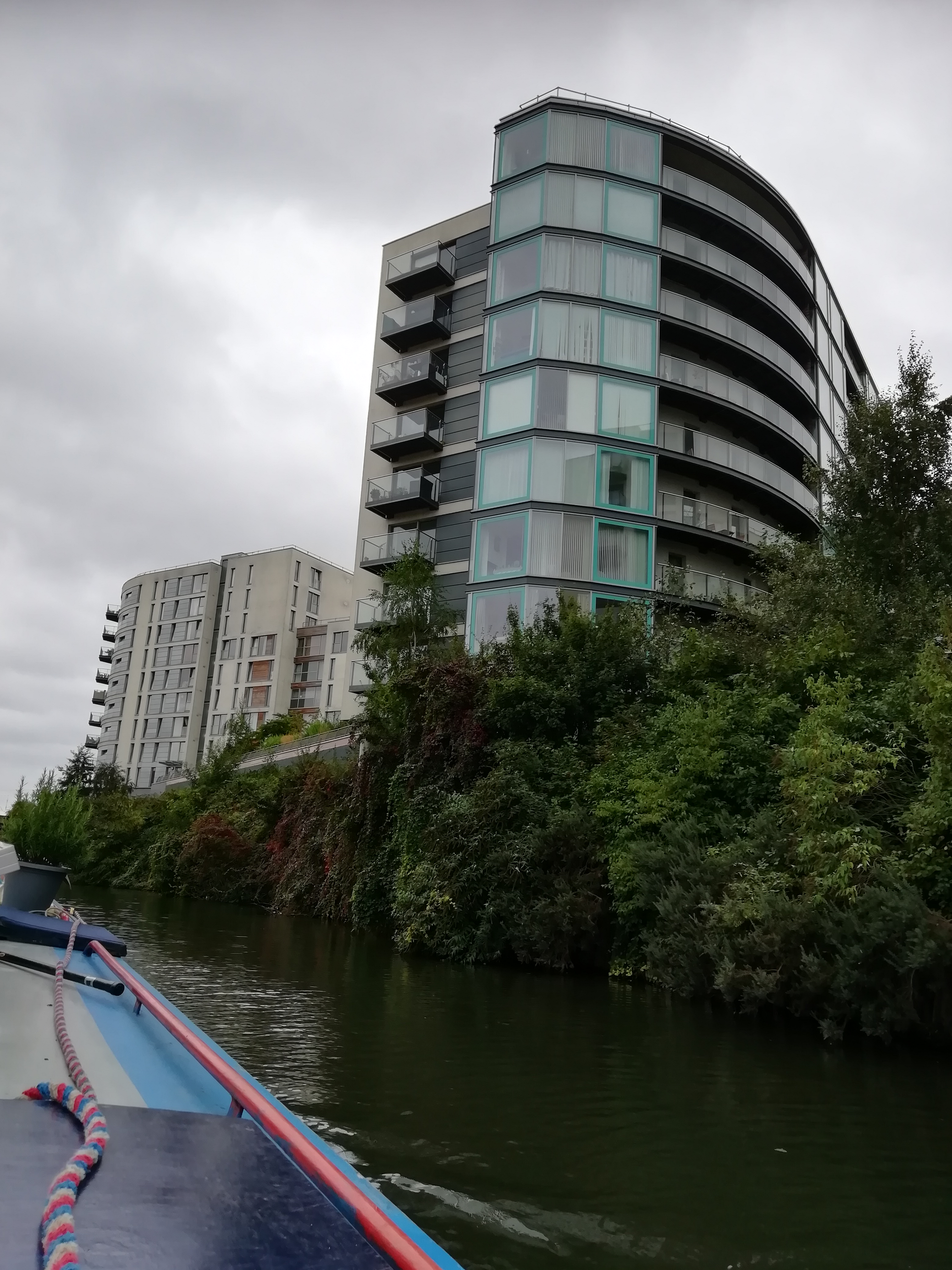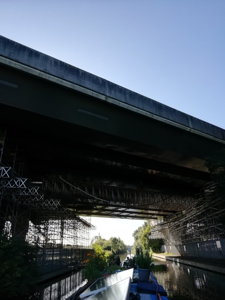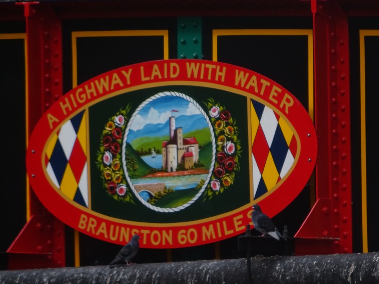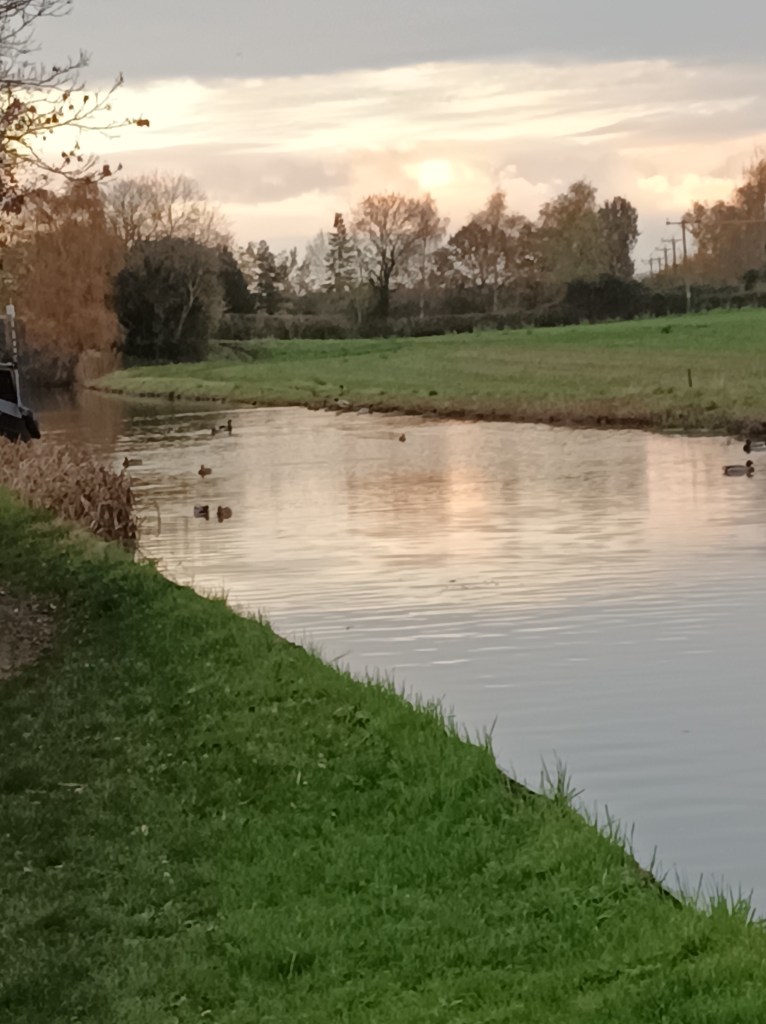 On our side of the water, walkers passed soundlessly on newish, well made paths. Ducks chattered alongside a solitary swan. The birds kept up a steady flow of conversation and made their presence heard (and felt too as they tapped their beaks against our steel hull to see if there’s interesting edible weed attached to us that they can enjoy). The occasional train rumbled past but there are few regular services on this branch line. Sudden shrill sirens on distant roads reminded us of how close we are to the hustle and bustle of a town.