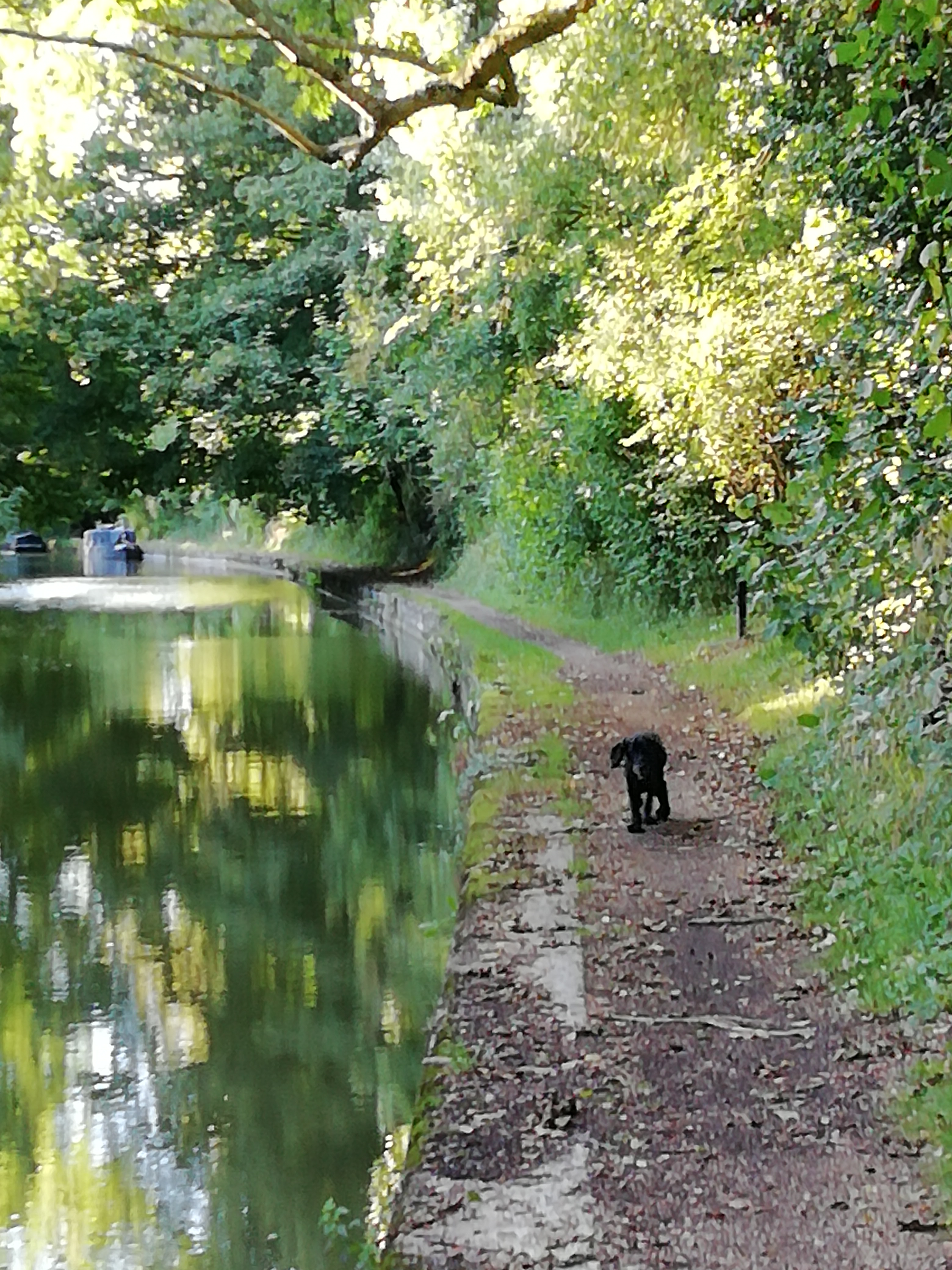 A railway rumbled intermittently and regularly in the distance; a little-used lane over a canal bridge ahead brought the sound of vehicles, and beyond the long term moorings a large property was guarded by occasionally vocal dogs that sounded fittingly large too. It was at times though remarkably quiet here, and that included birdsong. I saw no birds on the water and the hedge alongside our mooring seemed bereft of inhabitants. Walking the dog just 50 yards beyond the bustle by the moorings and the wildbirds appeared. They’ve chosen a quieter, more peaceful location.