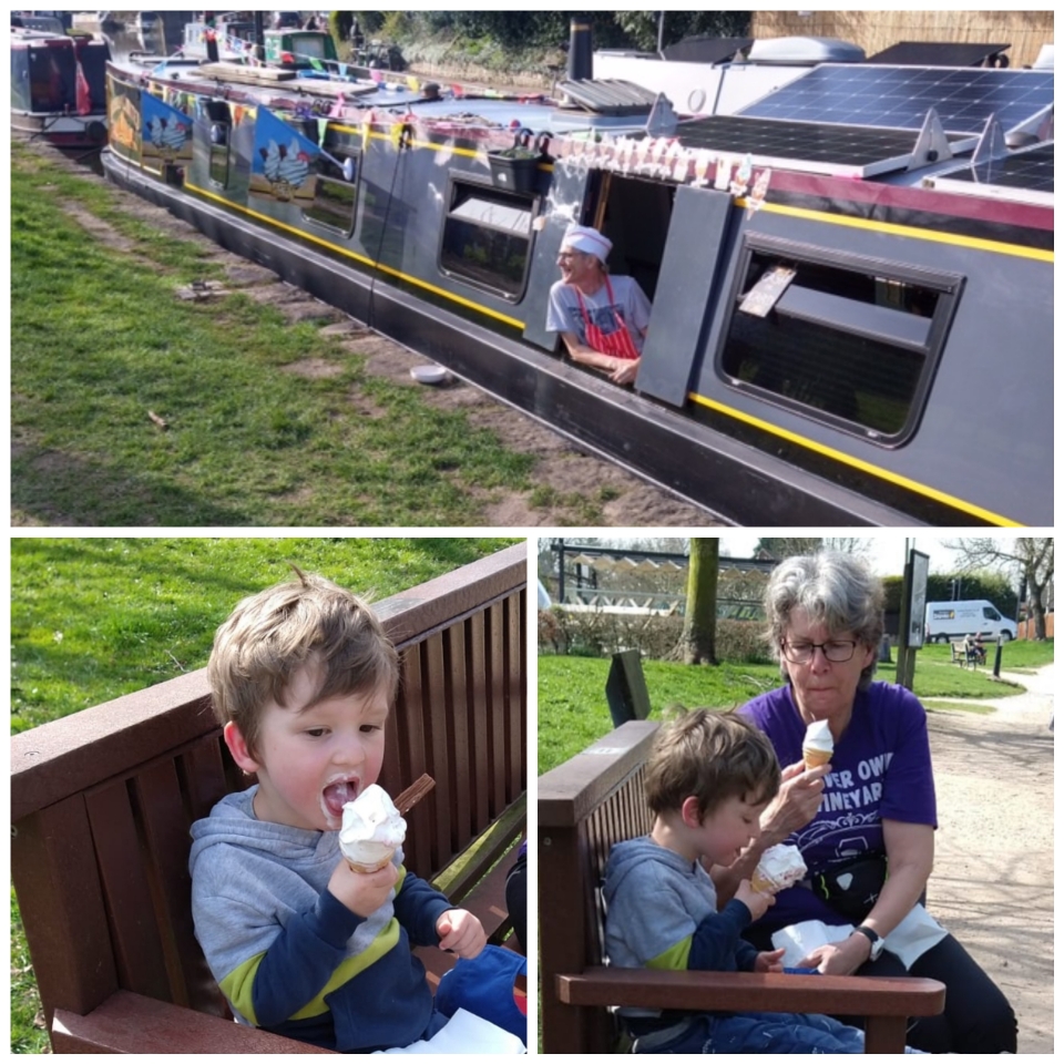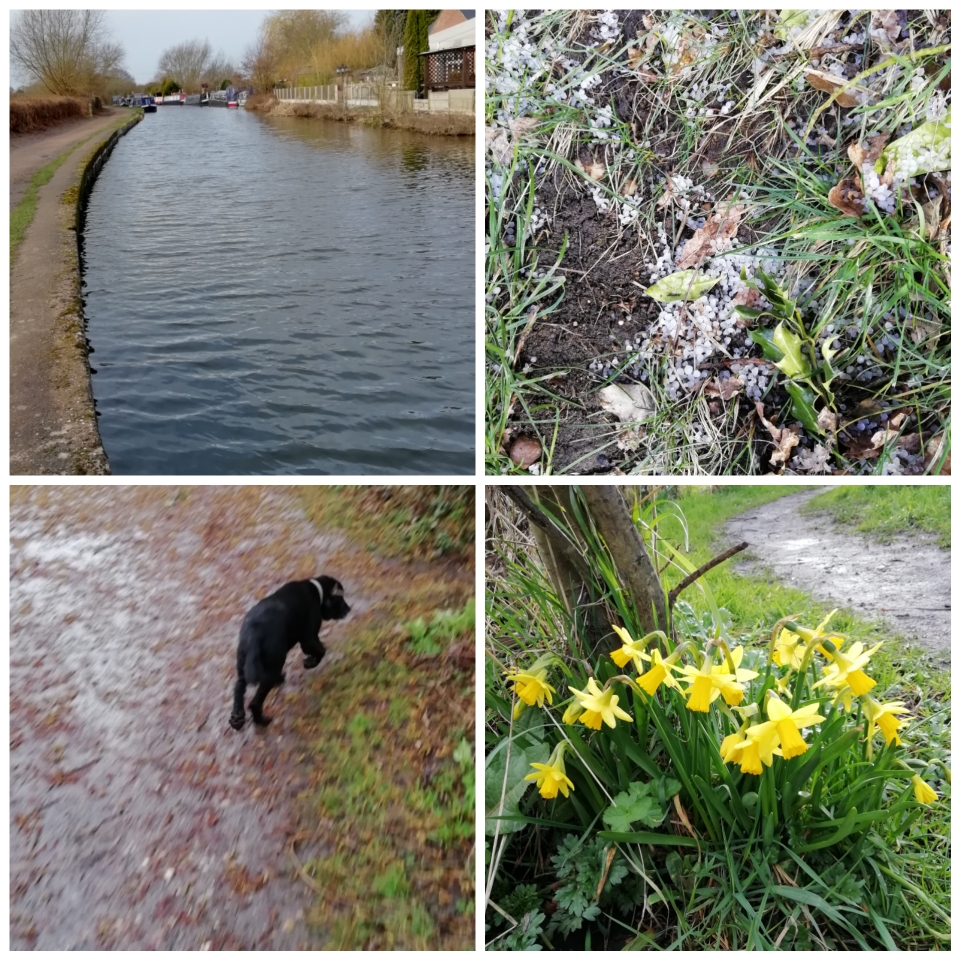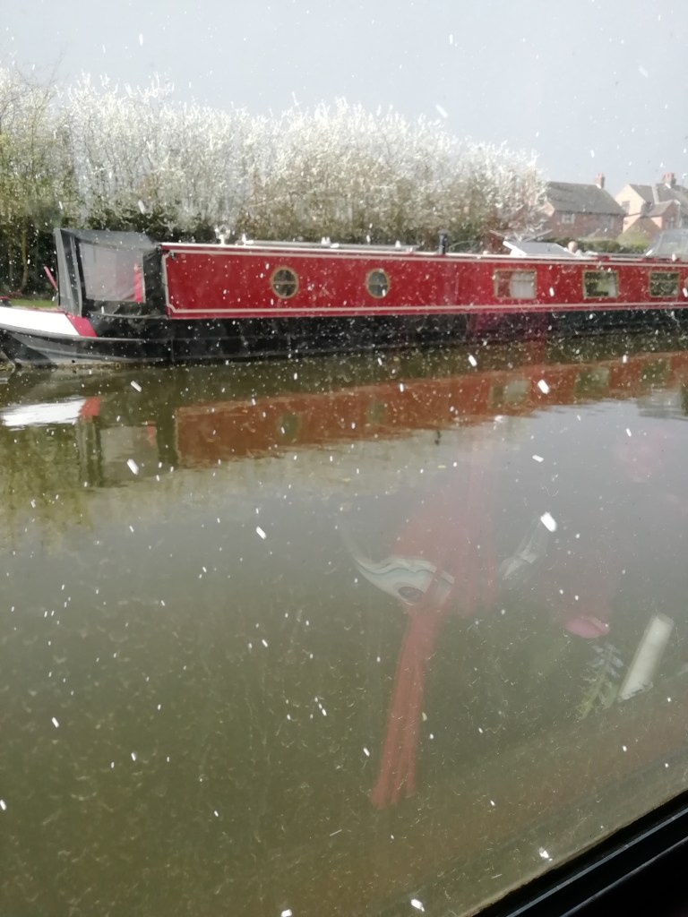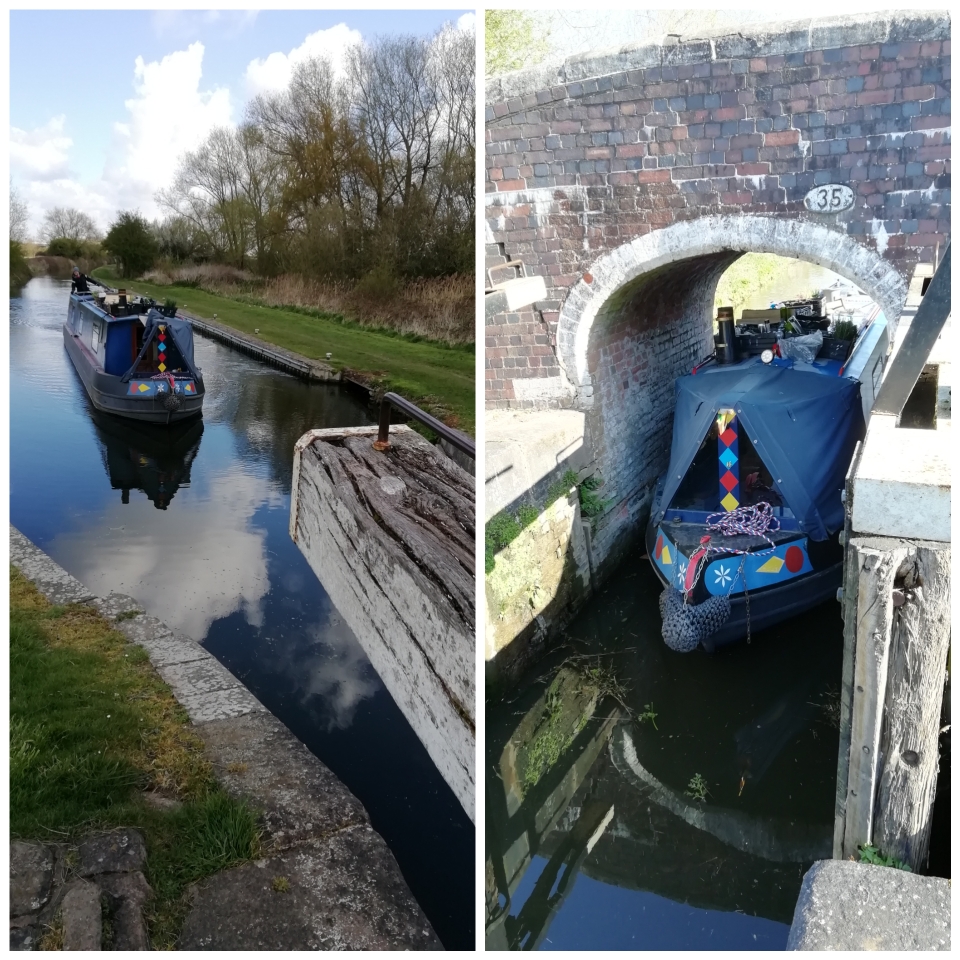 This year I am acutely aware of the accelerating pace of Spring. Every day it seems new buds appear, new flowers arrive to show off their colours and scents. After the busy bustle of Fradley Junction where we pulled in by the Laughing Duck cafe to fill up at the slowest water point ever, and after emptying all the waste, we’d earned a pint outside the Mucky Duck (aka The Swan). Narrowboat life makes you very aware of your water consumption and waste production – you can’t help it!