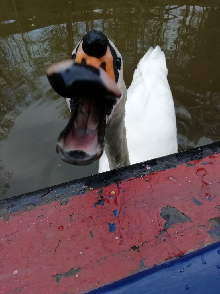 Back on the boat our mornings and evenings have been entertained by new neighbours – as you might expect from such impressive surroundings, we’re not just picking up ducks here! A stately heron and a very determined swan have made our acquaintance this week along with acrobatic moorhens and a robin all fluffed up in the chill of the morning frost.