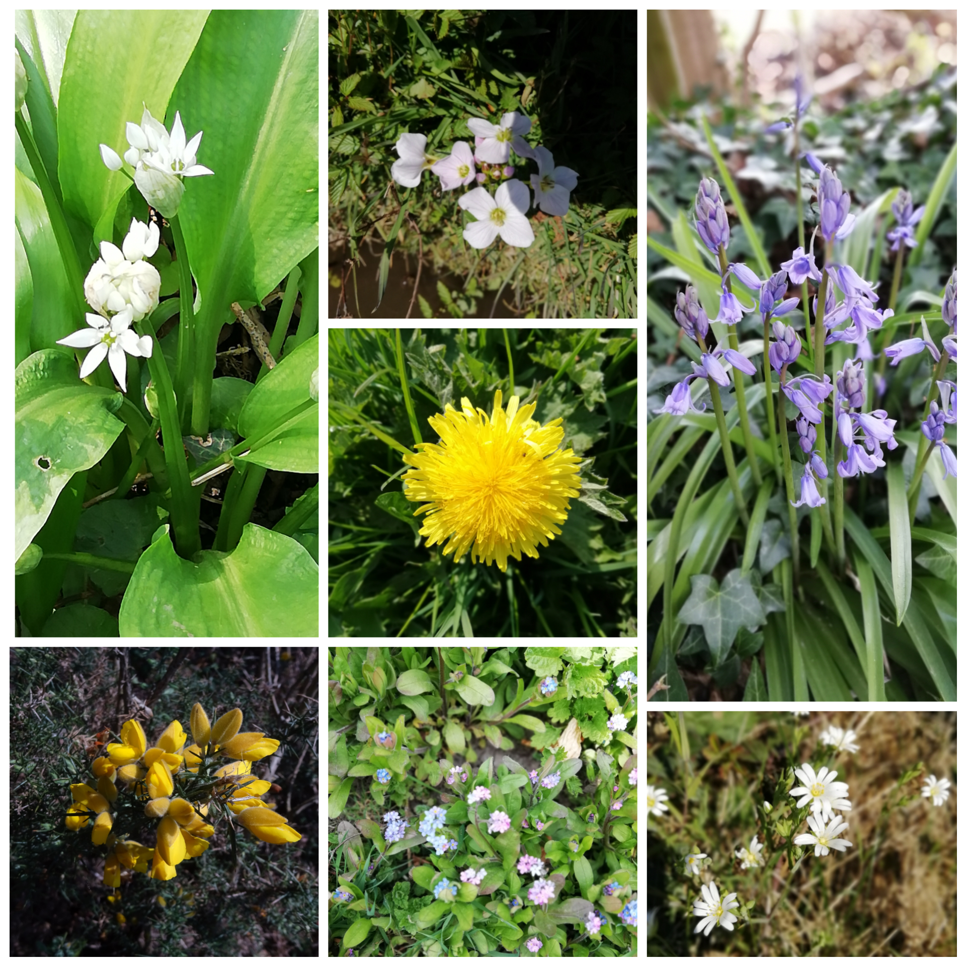 We’ve walked miles on footpaths, woodland and towpaths, walks brightened by the glimpse of a vivid yellow dandelion flower, a glade of bluebells beginning to flower, a flash of white from a clump of lesser stitchwort against the green grass of a verge, and the mouthwatering scent of ransoms (wild garlic). Forget-me-nots, lady’s smock and the peppery yellow gorse flowers have all added colour, texture and in some cases extra flavour to our days.
